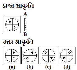 यदि एक दर्पण को AB रेखा पर रखा जाए, तो दी गई उत्तर आकृतियों में से कौन-सी आकृति प्रश्न आकृति की सही प्रतिबिम्ब होगी ?