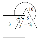दिए गए चित्र में वृत्त कारोबारियों को दर्शाता है, त्रिभुज शिक्षित व्यक्तियों को दर्शाता है, और आयत 10,000 रुपये से अधिक मासिक आय वाले व्यक्तियों को दर्शाता है। प्रतिमाह 10,000 रुपये से अधिक आय वाले शिक्षित कारोबारियों की संख्या ज्ञात कीजिए।
